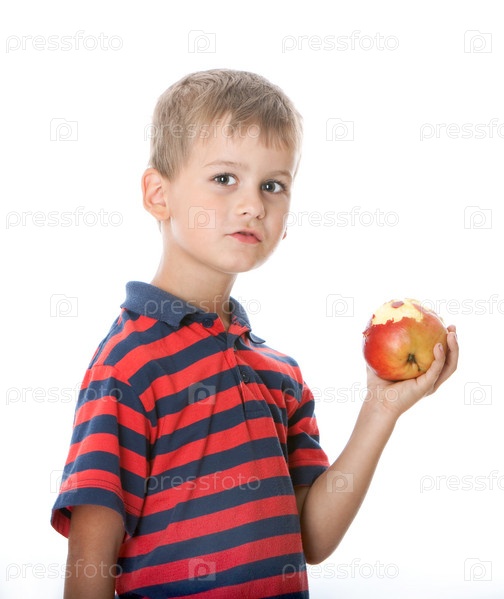 Мальчик дежит яблоко