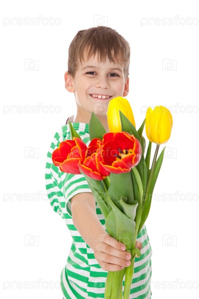 Мальчик с букетом тюльпанов