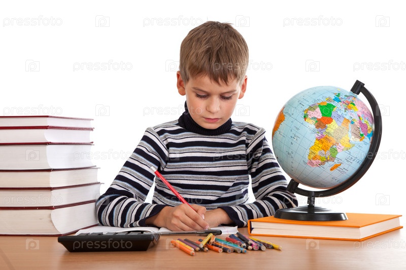 Пишущийт милый школьник