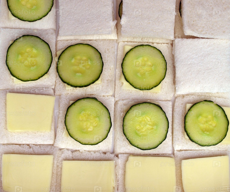 Традиционный британский бутерброд с огурцом, маслом и хлебом