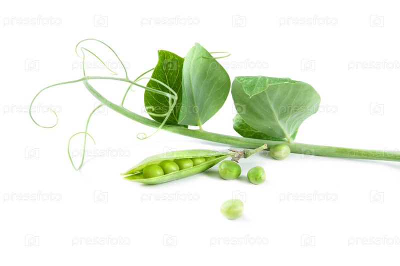 Свежий зеленый горошек, изолированный на белом фоне