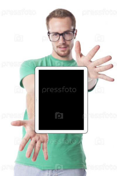 Симпатичный мужчина с планшетным компьютером