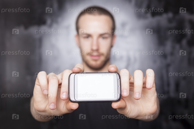 Мужчина показывает дисплей мобильного телефона