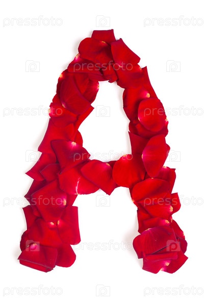 Буква А из красных листьев роз