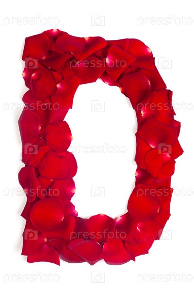 Буква D из красных листьев роз