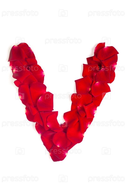 Буква V из красных листьев роз