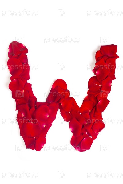 Буква W из красных листьев роз