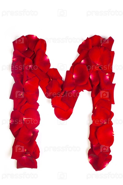 Буква М из красных лепестков роз