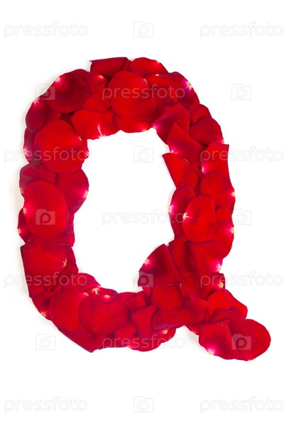 Буква Q из красных листьев роз