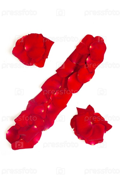 Знак процентов из красных лепестков роз