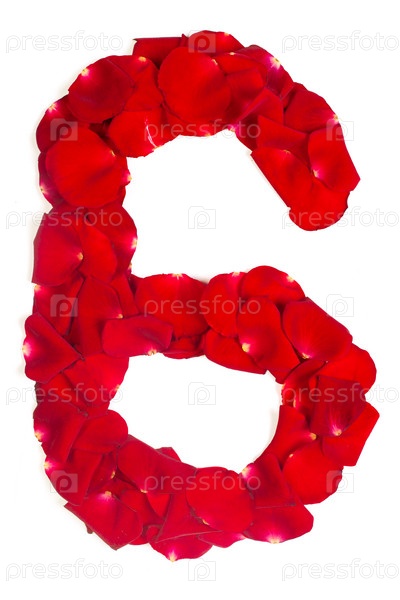 Цифра 6 из красных лепестков роз