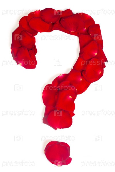 Вопросительный знак из красных лепестков роз