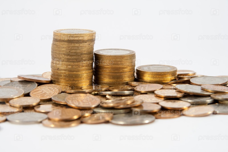 Монеты различных стран на белом фоне
