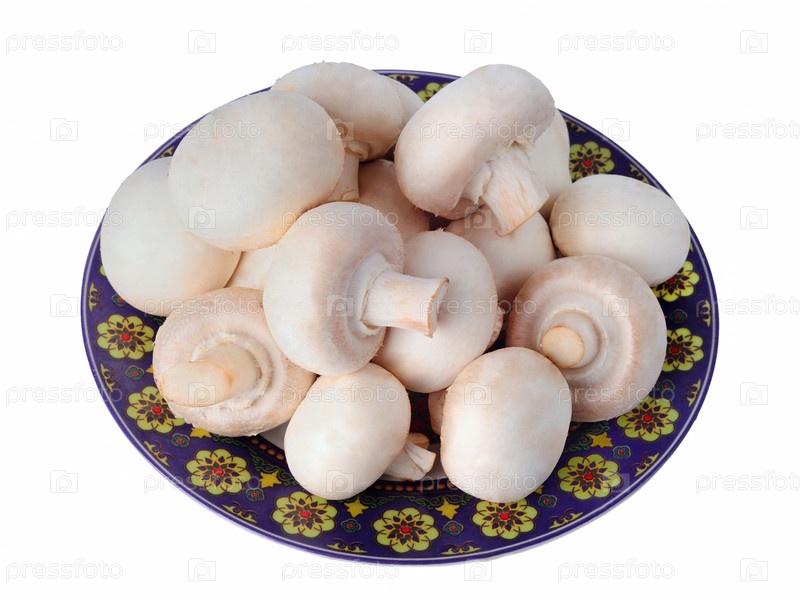 Белые грибы на тарелке, изолированные на белом фоне