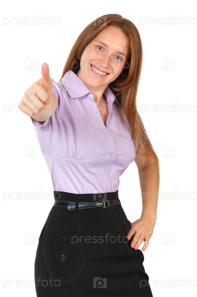 Улыбающаяся молодая женщина показывает большой палец вверх