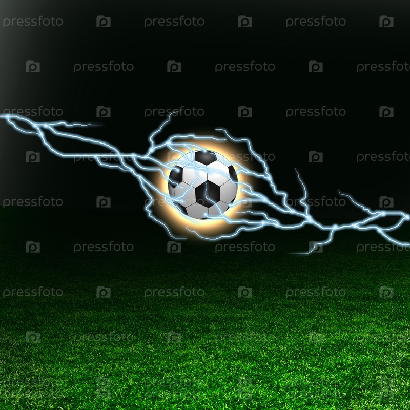 Футбольный мяч с молнии на зеленом поле