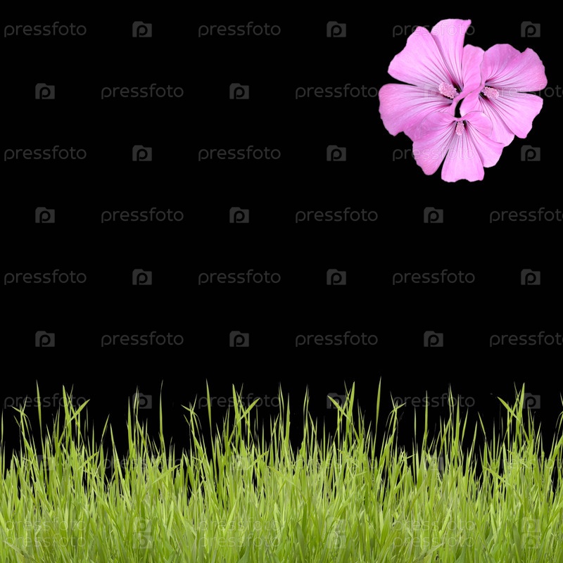 Зеленая трава с красивые цветы на черном фоне