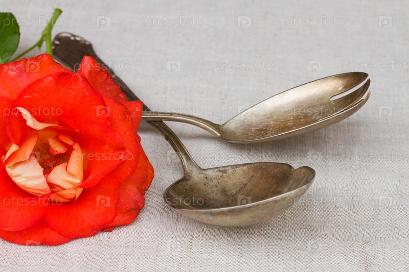 Старинные столовые приборы - ложка и вилка с розой
