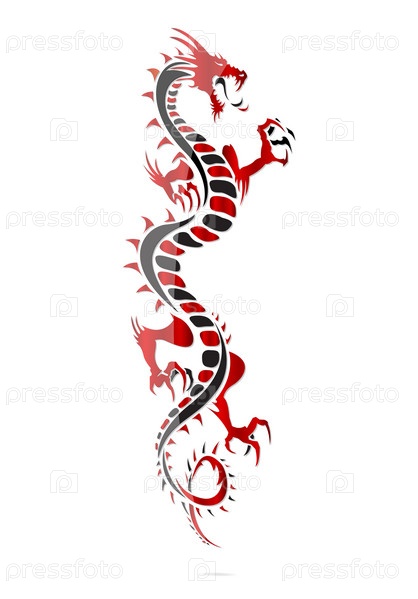 Азиатский дракон, татуировка, изолировано на белом фоне