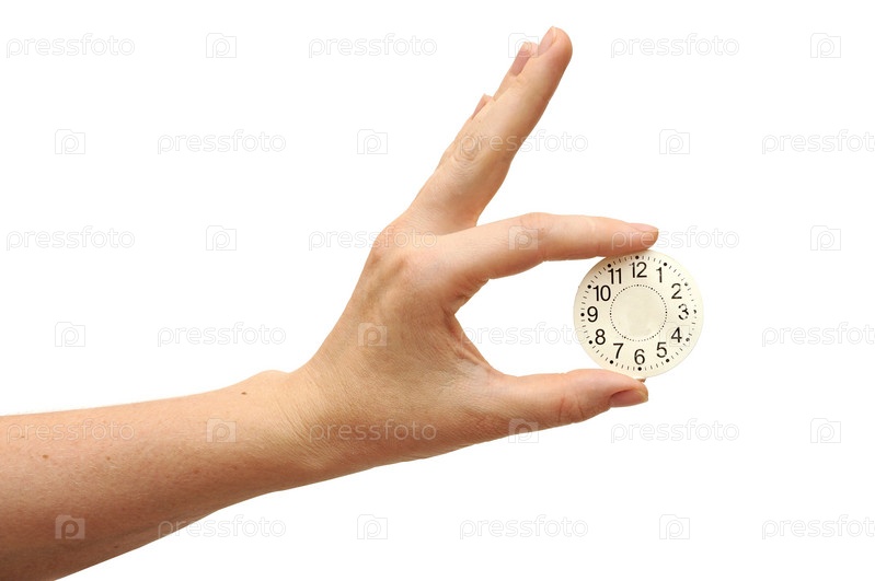Циферблат в руке на белом фоне. Концепция сохранения времени