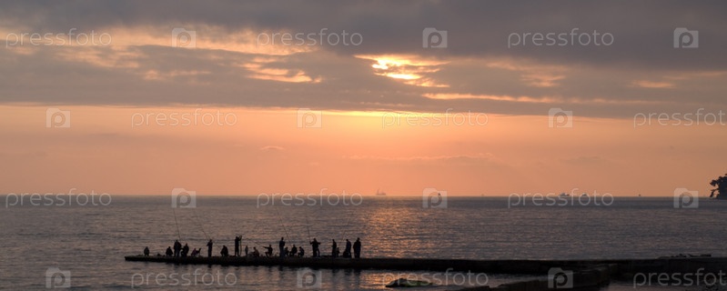 Панорамный вид заката на Черном море