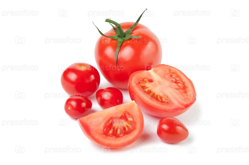 Спелые помидоры на белом фоне
