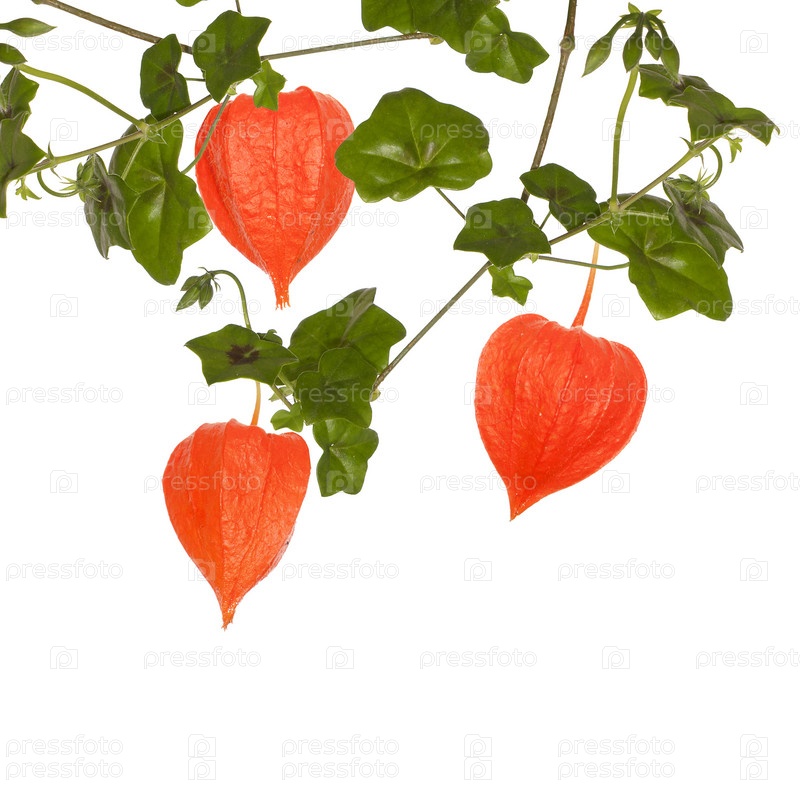 Декоративное растение на белом фоне. Физалис