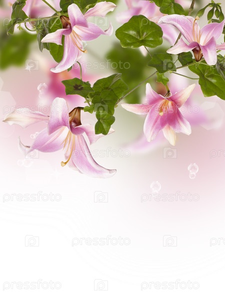 Декоративные розовые лилии на абстрактном фоне. Поздравительная открытка