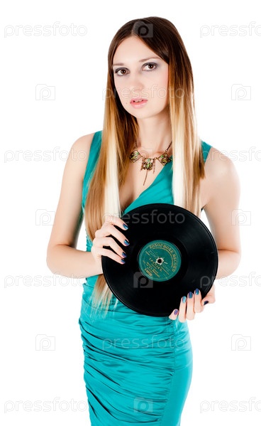 Красивая девушка держит виниловый диск