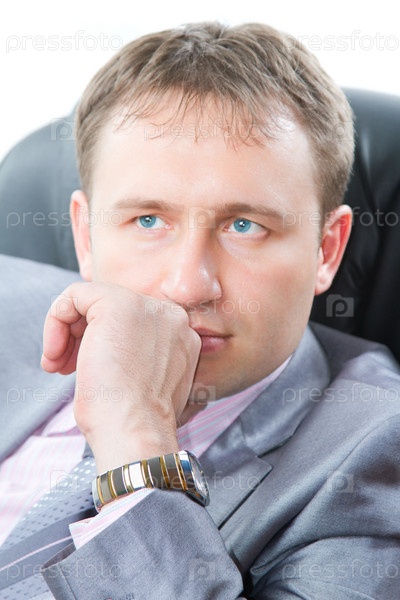 Красивый молодой бизнесмен в стильном костюме и галстуке, в офисе