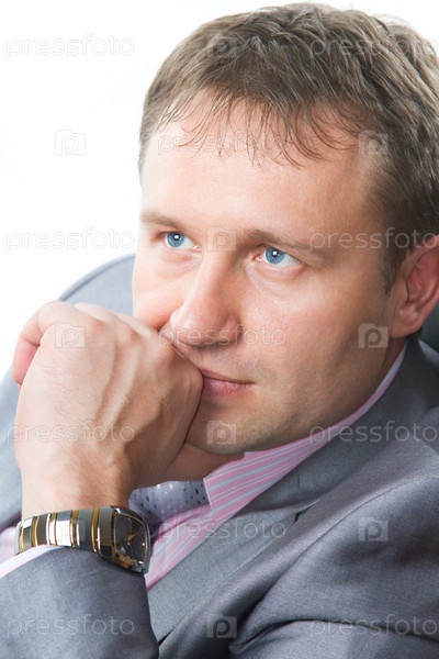 Портрет задумчивого руководителя в конце дня на изолированном белом фоне
