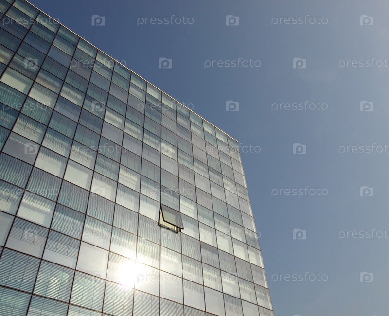 Современный высотный небоскреб из стекла и стали