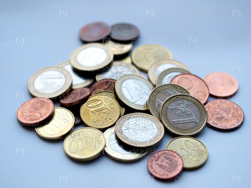 Евро монеты на голубом фоне