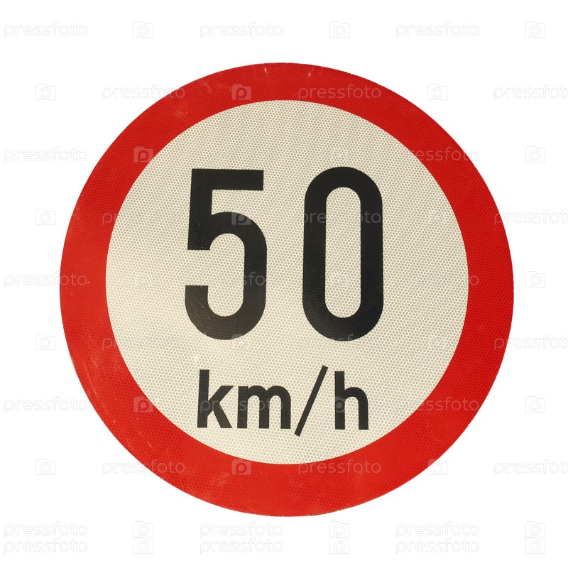 Знак ограничения скорости движения, изолированный на белом фоне