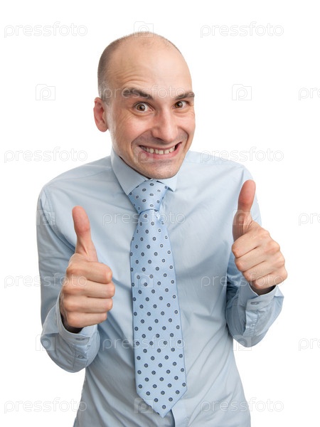 Хитрый бизнесмен показывает пальцы вверх