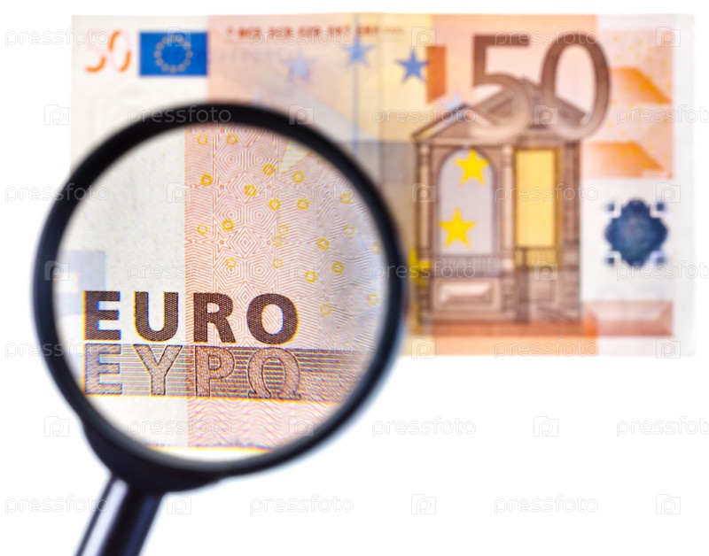 Банкнота евро под лупой