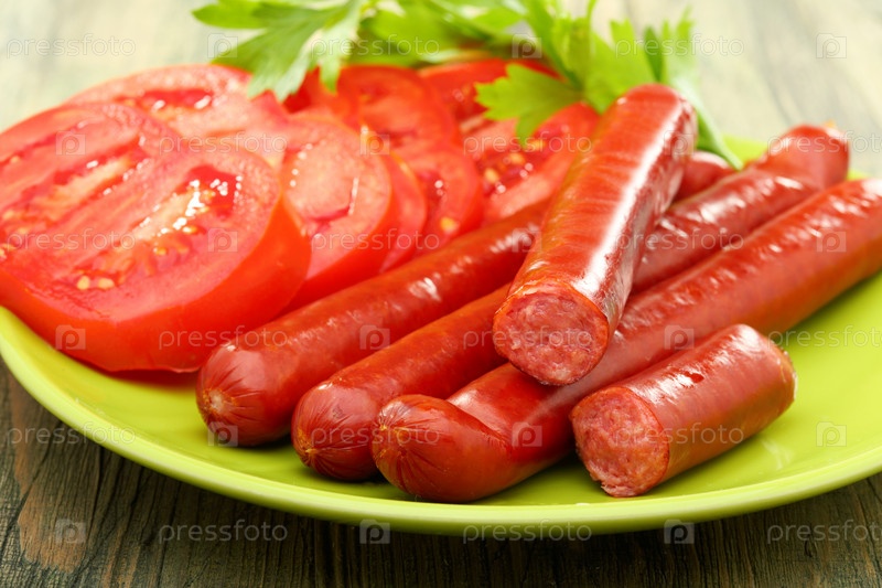 Копченая колбаса и помидоры