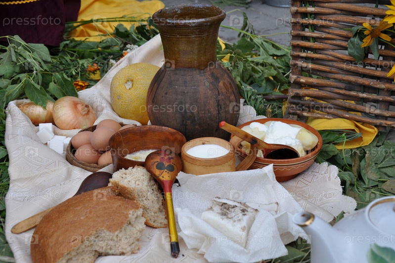 Хлеб, сало и крынка молока