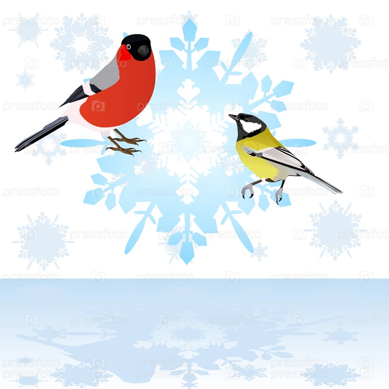 Снегирь и синица на снежинке