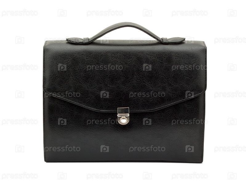 Закрытый черный портфель, изолированный на белом фоне