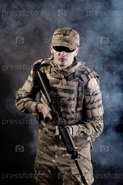 Солдат с ружьем на черном фоне