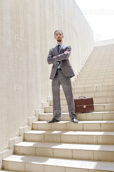 Бизнесмен на лестнице, бизнес-концепция