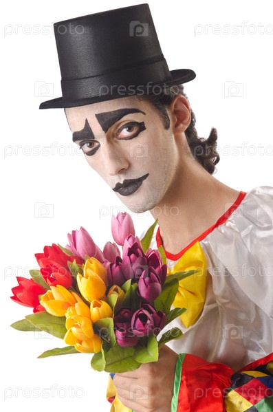 Печальный клоун на белом фоне