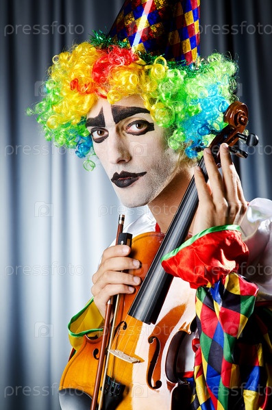Клоун играет на скрипке
