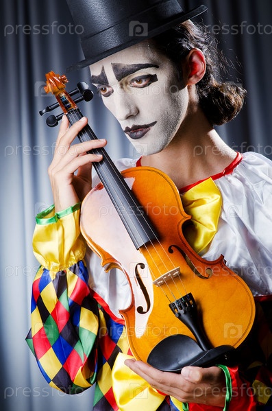 Клоун играет на скрипке