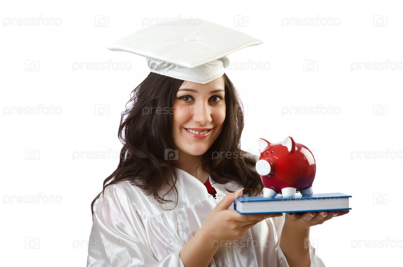 Молодая девушка с копилкой в руках