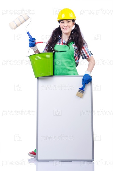Молодая девушка-строитель