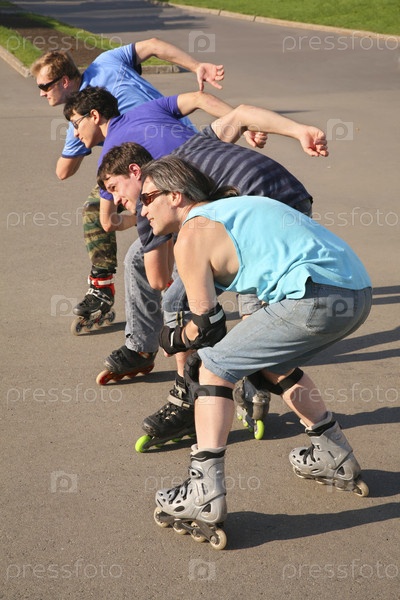 Команда молодых людей на роликовых коньках