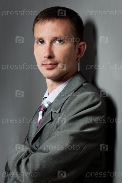 Портрет бизнесмена на сером фоне