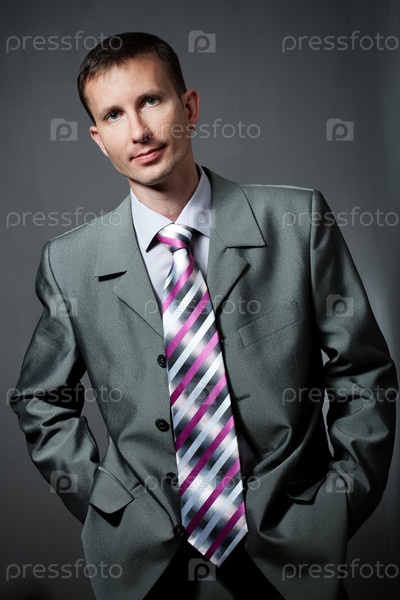 Портрет бизнесмена на сером фоне